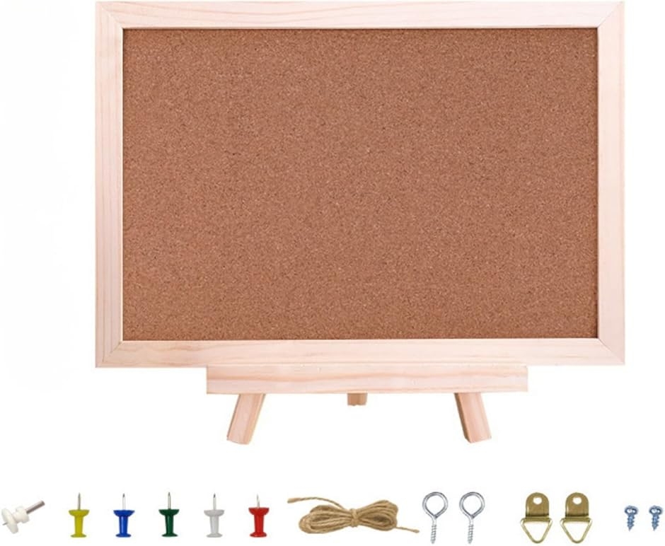 コルクボード 掲示板 両面 卓上 スタンド付き (長さ30cm x 幅20cm)